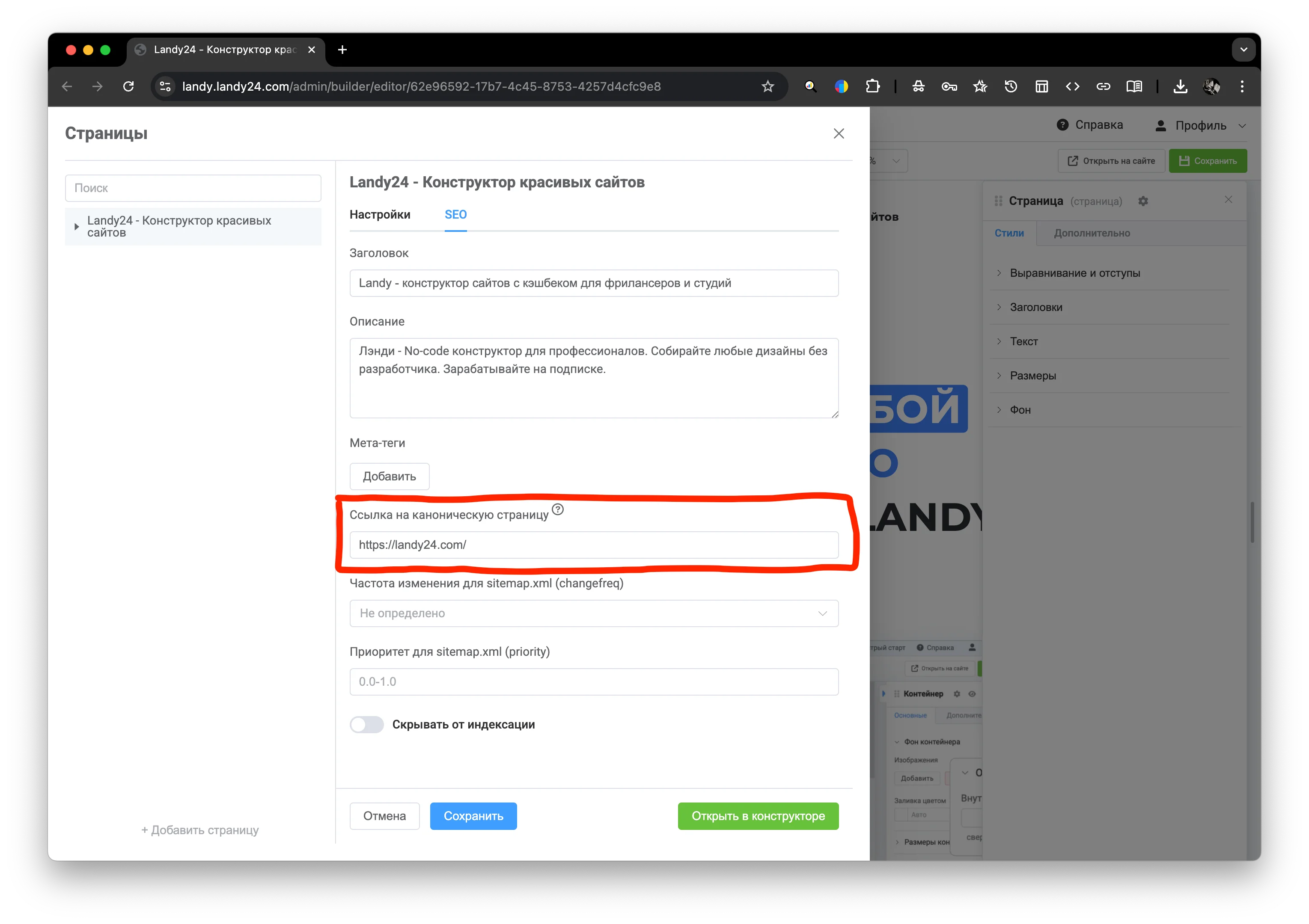 Откройте вкладку "SEO"