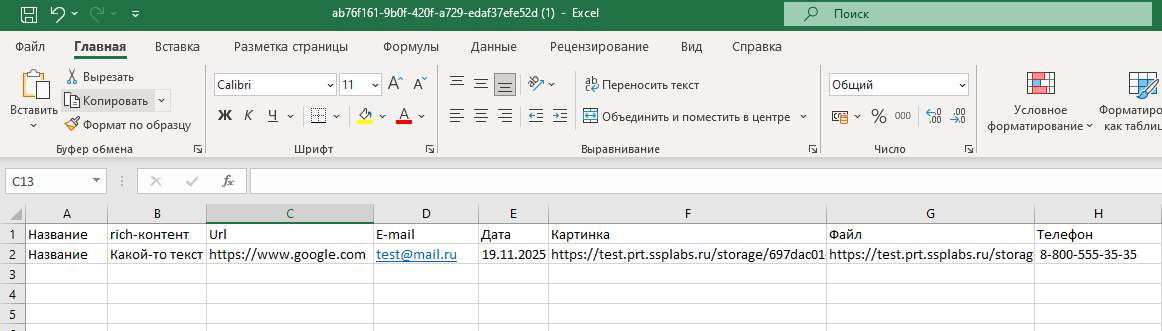 Скачайте CSV-шаблон для ознакомления со структурой данных. Скачать CSV-шаблон