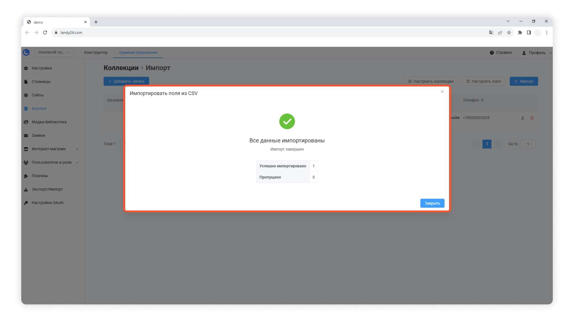 Как все поля будут заполнены, нажмите на кнопку "начать импорт".
