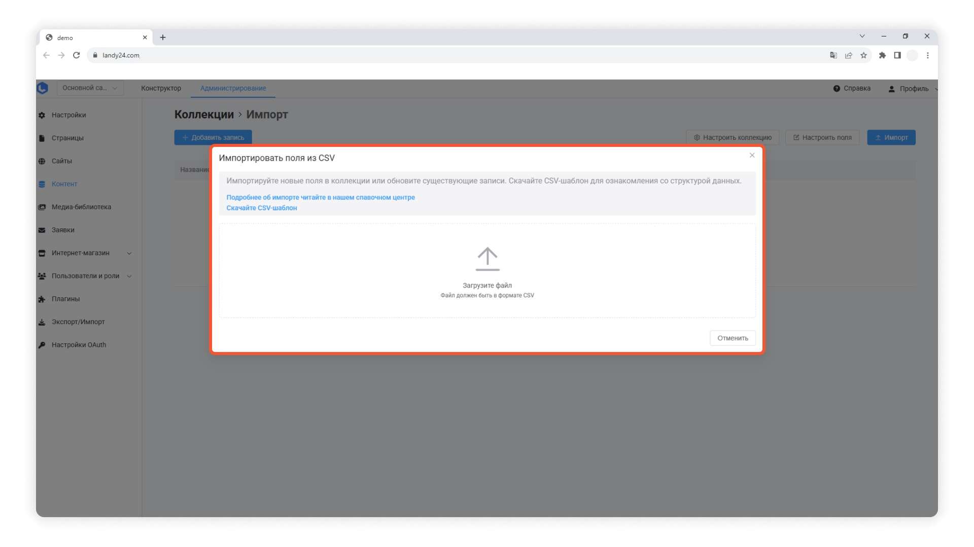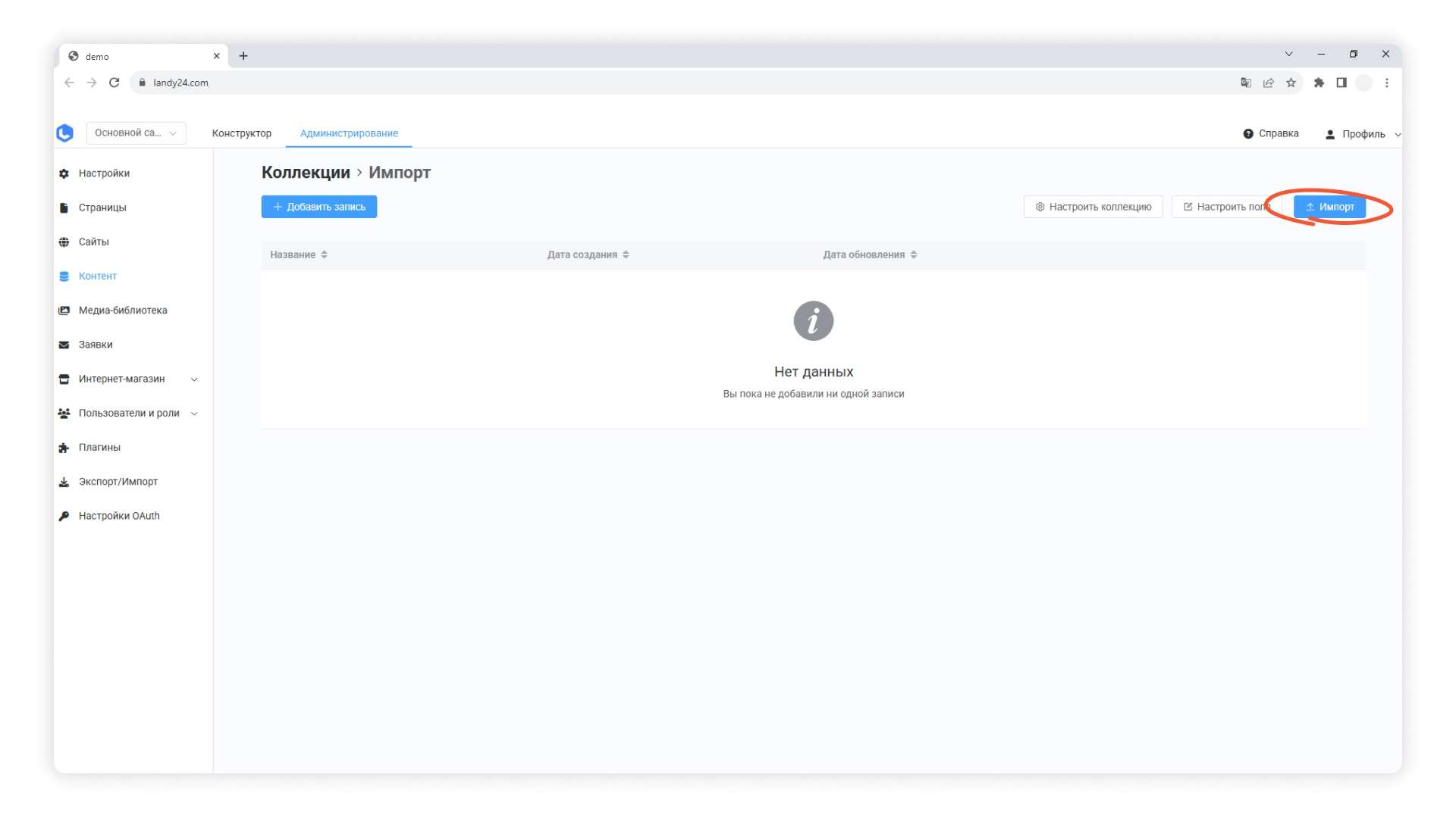 Для того, чтобы импортировать данные, перейдите к Коллекции и нажмите на кнопку "импорт".
